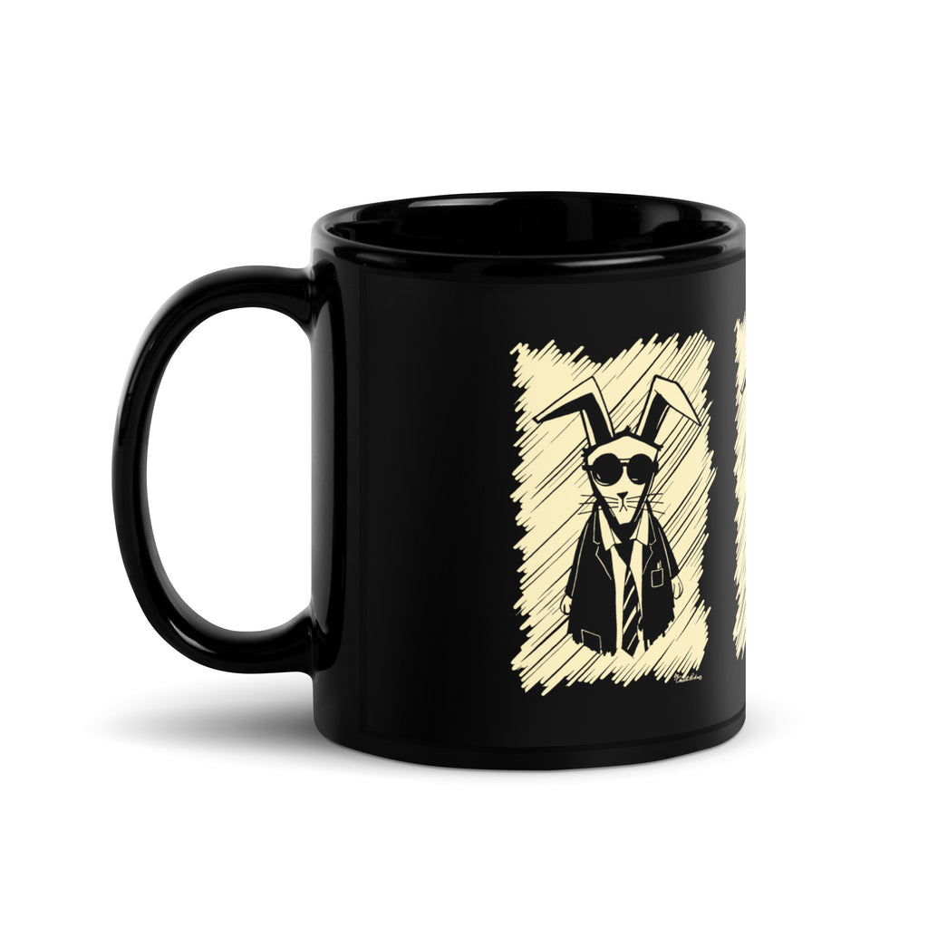 Logo for The Proper Bunny with yellow face and floppy ears, round sunglasses in suit with green shirt, navy jacket with red and navy tie.